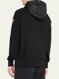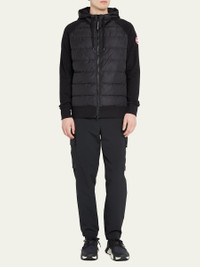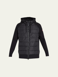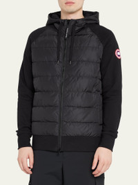 Canada Goose "Hybridge Huron" knit jacket with padded front panel Drawstring hood; twoway zip closure Side pockets Long raglan sleeves Relaxed fit Banded cuffs and hem Cotton Lining: Nylon Fill: Down Made in Romania