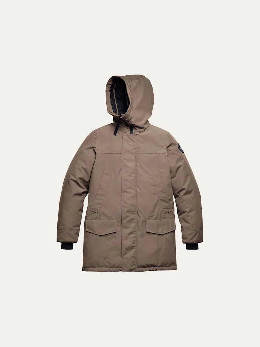 Canada Goose "Langford" parka TEI 4 is optimal for temperatures 5°F to 15°F; it is inspired by the Arctic and made for enduring daily warmth. Twoway adjustable hood Chin guard with tricot fabric for softness and comfort Twoway zip closure with storm flap Two fleecelined hand warmer pockets Two flap pockets Two interior pockets Slim fit Interior drawcord at waist Tonal disc logo patch at sleeve Recessed ribknit cuffs lock in heat Polyester/cotton Lining: Recycled nylon Fill: 80/20 duck down/duck feather Dry clean only Made in Canada