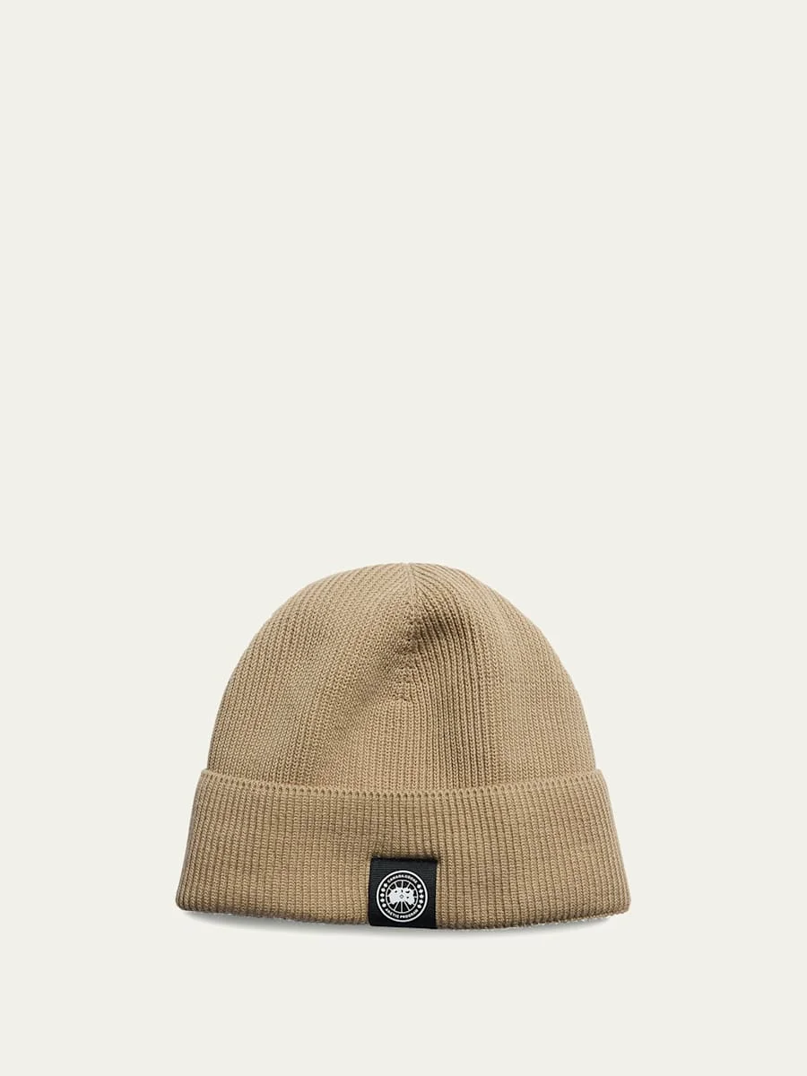 Cotton yarn is knit into a ribbed design for this Canada Goose beanie. Contrast label with logo Foldover cuff Cotton Hand wash Made in Italy