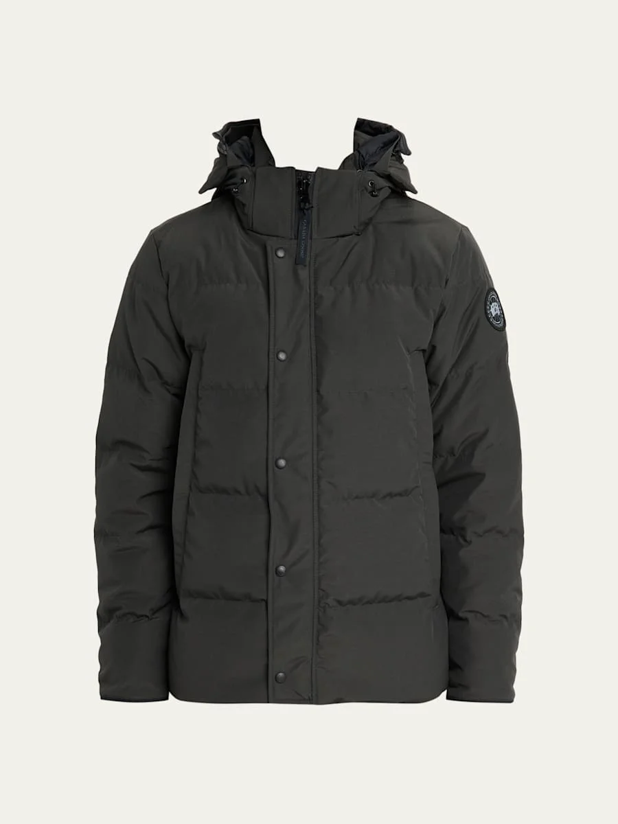 Canada Goose "Wyndham" solid parka with slim silhouette designed to keep you warm in variable conditions TEI 3 is optimal for temperatures 15°F to 5°F; it is fundamental warmth fashioned for everyday use. Removable downfilled hood with shaping wire Tricotlined chin guard for softness and comfort Zip front closure with snap placket Fleecelined hand warmer pockets Two interior pockets Tonal disc logo at sleeve Recessed ribknit cuffs lock in heat Polyester/cotton Lining: Recycled nylon Fill: Down Made in Canada