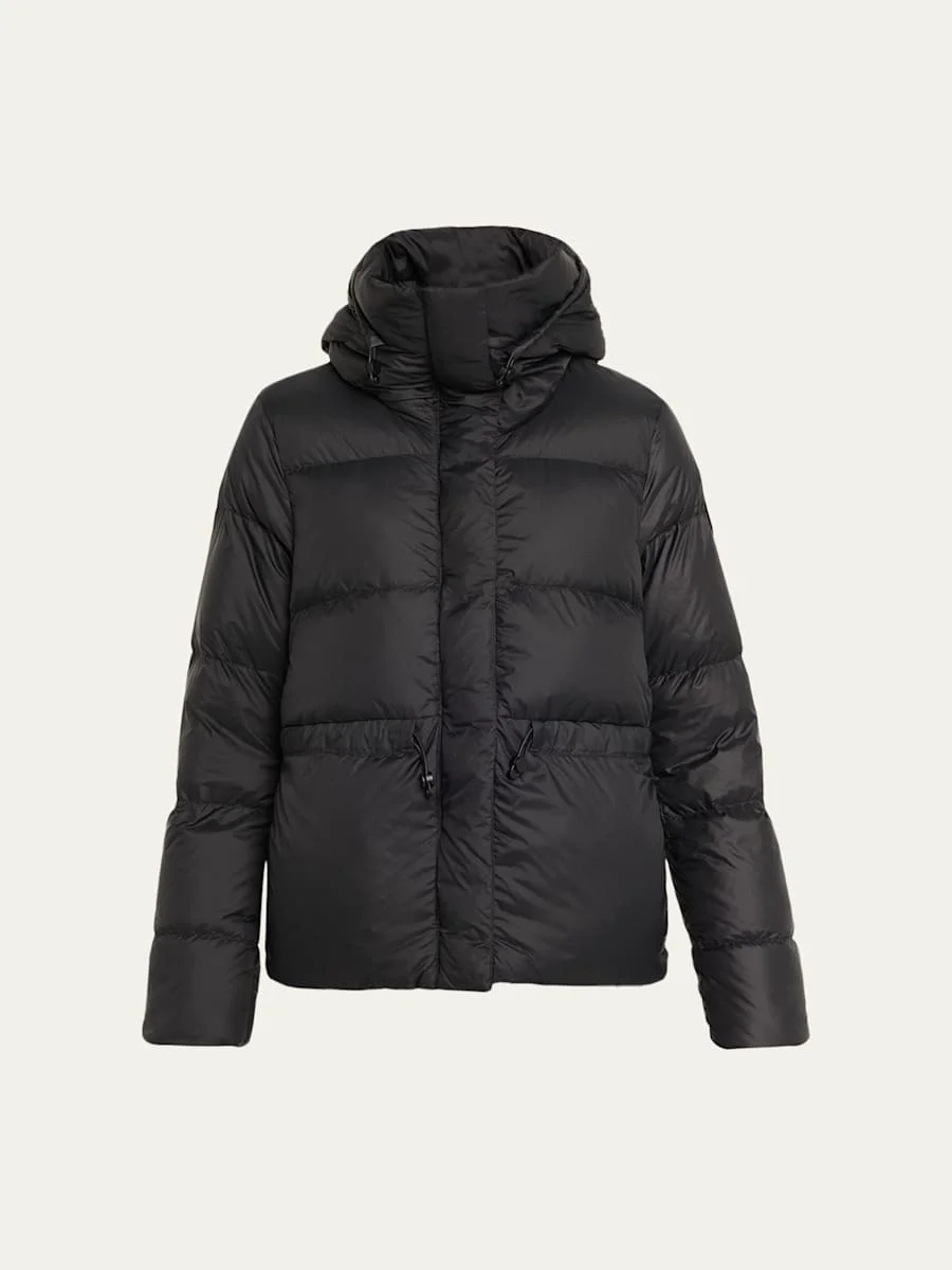Crafted from ultra-lightweight Lumina, the "Montgomery" puffer jacket by Canada Goose features an adjustable drawcord hood and waist for a personalized fit that locks in warmth. Cold-weather protection down to -4°F. Features interior backpack straps for hands-free carrying Hooded neckline Long sleeves with rib-knit cuffs Signature logo patch on the left sleeve Side zip pockets; two interior pockets Classic fit Short length Two-way zip-front with snap placket Nylon/polyamide Fill: Down/feather Lining: Nylon Machine wash cold inside out Made in Canada Online Inquiries: BGS21_T6YBD| Store Inquiries: #5065582