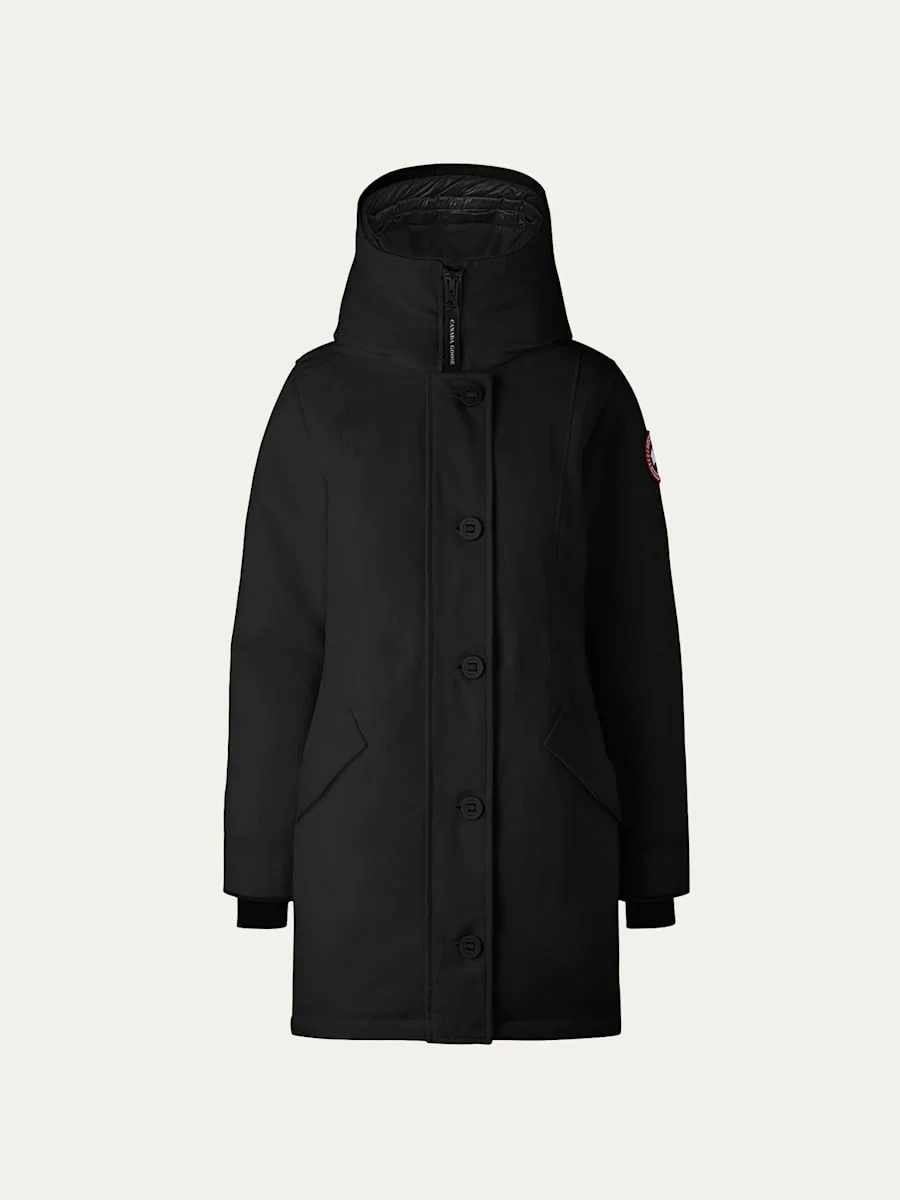 The Rossclair Parka is now available with a new Arctic Tech Hood Trim for added durability and warmth. This mid-length parka is crafted from our durable Arctic Tech® fabric that’s designed to face harsh elements. Wear it sleek and straight or tighten the adjustable waist to create an a-line silhouette, which helps keep icy drafts out. A longer back hem offers superior protection from cold and wind. Canada Goose "Rossclair" parka crafted from durable arctic tech® fabric designed to face harsh elements Hooded stand collar Two-way zipper front; buttoned placket Long sleeves Flap pockets at sides Adjustable belted waist Back center slit Classic fit Mid-length hem Polyester/cotton Lining: Recycled nylon Do not iron, dry clean only Made in Canada Model is 5'10"/177cm. Online Inquiries: BGS21_T402P| Store Inquiries: #4402558