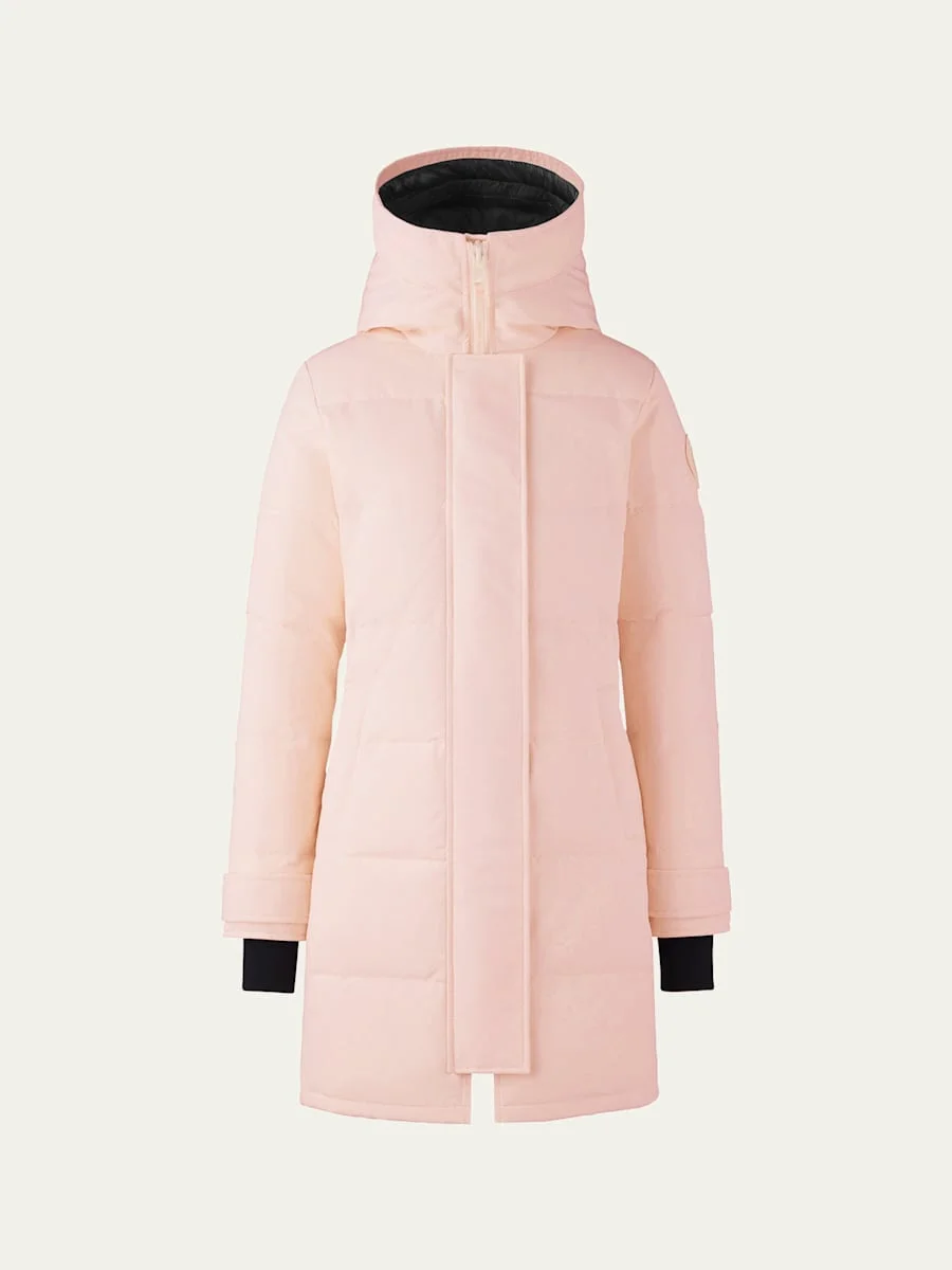 Crafted with functionality and style in mind, the "Shelburne" parka by Canada Goose features interior backpack straps for handsfree carrying and a removable zip guard along the hood for versatile styling. Waterrepellent and windresistant Cold weather protection down to 4°F. Hooded neckline; lined chin guard Long sleeves with ribknit cuffs and snaps Signature logo patch on the left sleeve Two exterior pockets; three interior pockets Classic fit Back vent with snaps for added movement Twoway zipfront with snap placket Polyester/cotton Fill: Down/feather Lining: Nylon Dry clean Made in Canada
