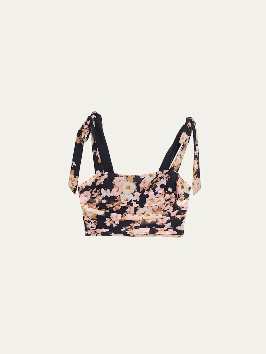 Crafted from luxurious silk, the "Daria" top by Cara Cara features a vibrant floral print and is finished with adjustable, selftie straps. Square neckline Sleeveless Cropped fit Slipover style Silk Dry clean only Imported