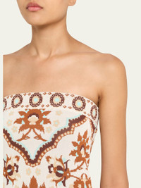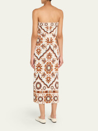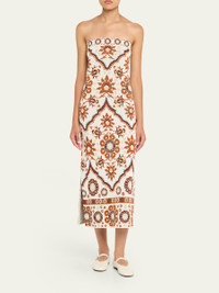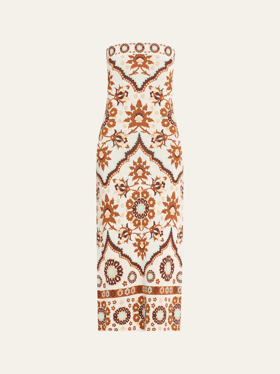 Cara Cara "Rome" knit midi dress featuring an all-over intricate print Strapless neckline Sleeveless Figure-hugging silhouette Hem falls below the knee Slipover style Viscose/nylon/polyamide Dry clean Imported Online Inquiries: BGS21_T6T5D| Store Inquiries: #5031630