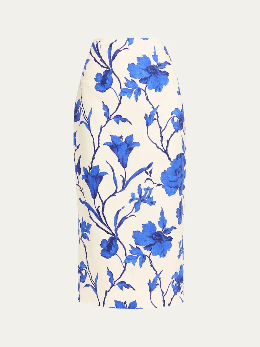 Cara Cara "Sienna" midi skirt featuring a vibrant print High rise Pencil style Hem falls below the knee Zip closure Cotton Imported