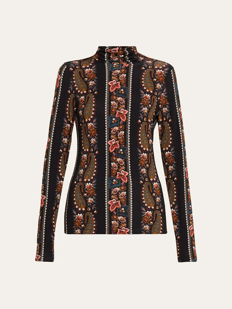 Suzie Top Sleek, Fitted Mock-Turtleneck in Luxurious Printed Slinky Jersey