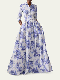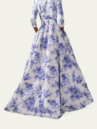 Carolina Herrera ball skirt finished with pleating and a blur floral print High waist Side slip pockets Flare silhouette Floor sweeping hem Invisible back zip Polyester Dry clean Made in USA Online Inquiries: BGS21_B9YP8| Store Inquiries: #5003850