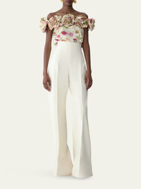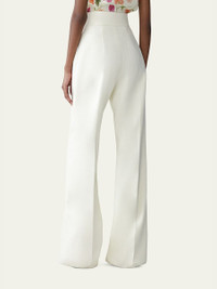 Carolina Herrera "Diane" pants are tailored in a crisp wool crepe with a wide waistband panel High rise Flat front Wide legs Full length Invisible side zip Wool Made in Italy Online Inquiries: BGS21_BB22M| Store Inquiries: #5445091