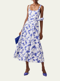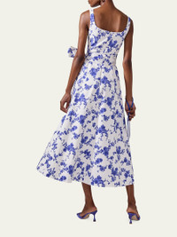 Floral-Print Midi Dress with Sash