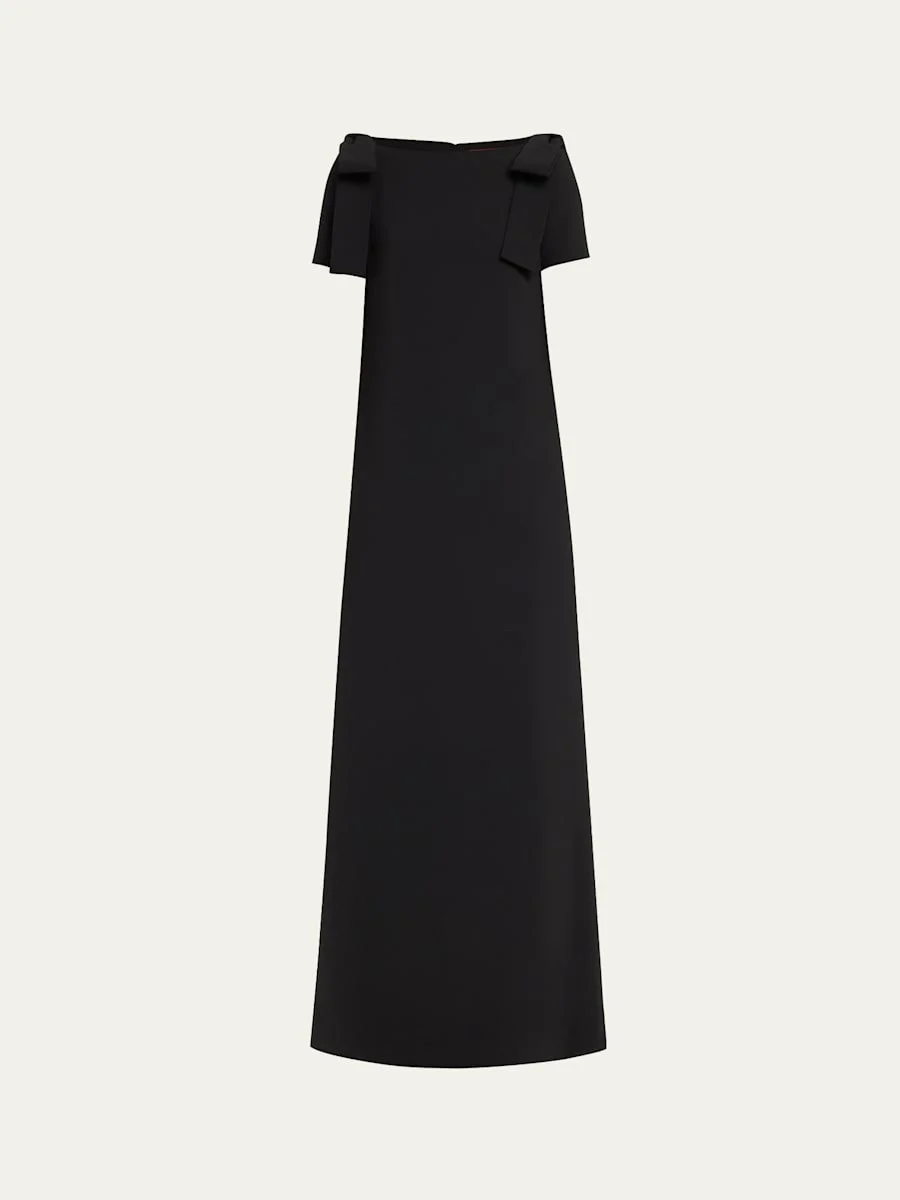 Shoulder Bow Crepe Column Gown