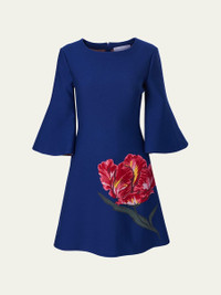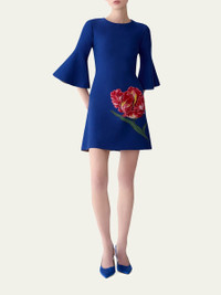 A striking example of the brand's signature blend of bold femininity and tailoring, this dress by Carolina Herrera features a large, vibrant tulip motif that blooms across the skirt Round neckline 3/4 dramatic bell sleeves Hem falls above the knee A-line silhouette Center back zipper Cotton/virgin wool/nylon/polyamide Dry clean Made in Italy Online Inquiries: BGS21_BAC34| Store Inquiries: #5068279