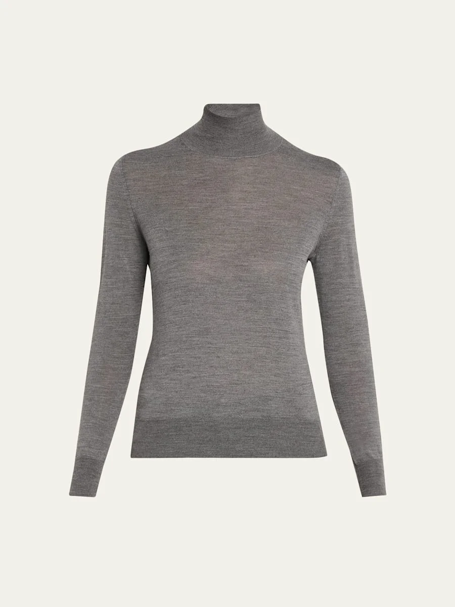 Carolina Herrera sweater in fine knit wool-blend Turtleneck Long sleeves Fitted Ribbed cuffs and hem Pullover style Virgin wool/silk Dry clean Imported Online Inquiries: BGS21_BA9K3| Store Inquiries: #5021112