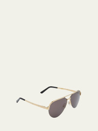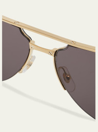 Cartier "CT0386S" aviator sunglasses in metal with a logo detail etched at the arms Eye/bridge/temple (in mm): 60-15-140 Solid-colored lenses Thin, half-rim frames Double nose bridge Adjustable nose pads Thin arms; angular capped temple tips Metal 100% UVA/UVB protection Made in France Proposition 65 warning for California residents Online Inquiries: BGS21_NAKW8| Store Inquiries: #4475585
