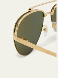 Cartier aviator sunglasses feature gold-tone hardware with studs Solid-colored lenses; etched logo at right lens Thin, full-rim frames Double nose bridge Adjustable nose pads Engraved logo at temples Thin arms; curved capped temple tips Metal 100% UVA/UVB protection Made in France Proposition 65 warning for California residents Online Inquiries: BGS21_NA076| Store Inquiries: #4400653