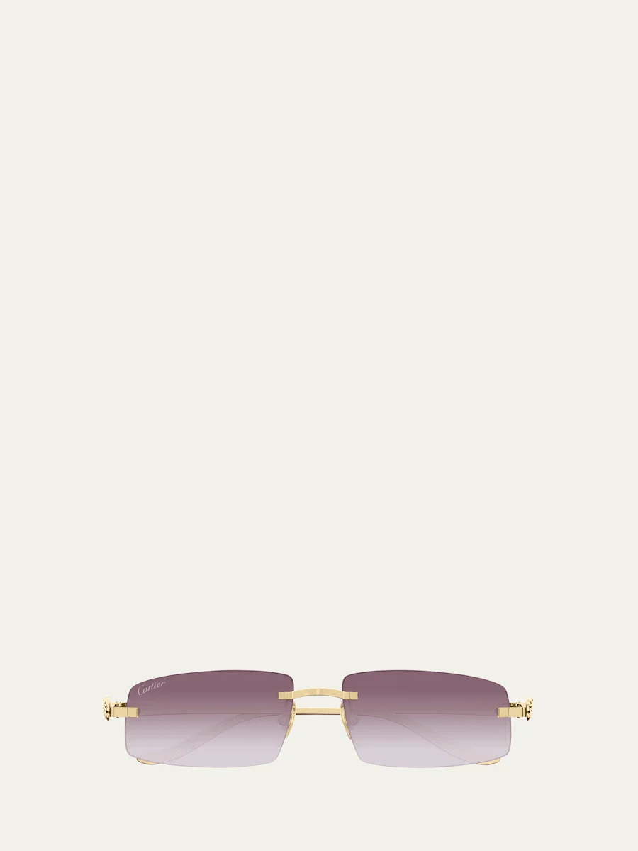 Cartier rimless rectangle sunglasses in metal Part of the Panthere collection Lens/bridge/temple (in mm): 5816135 Gradient lenses Adjustable nose pads Signature panther on temples 100% UVA/UVB protection Made in Italy
