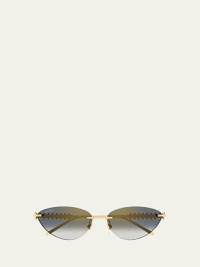 Cartier "CT0543S" cat-eye sunglasses in metal Eye/bridge/temple (in mm): 58-16-140 Gradient lenses; right logo script Adjustable nose pads Studding at the temples Thin, tapered arms 100% UVA/UVB protection Made in France Proposition 65 warning for California residents Online Inquiries: BGS21_D54L5| Store Inquiries: #4963817