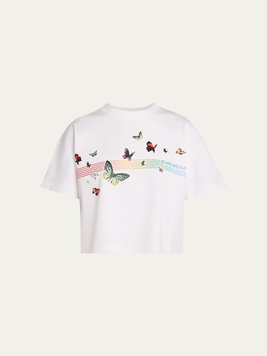 Crafted from organic cotton, this Tshirt from CASABLANCA features a butterfly logo printed front Crew neckline Short sleeves Boxy fit Cropped length Pullover style Organic cotton Made in Portugal