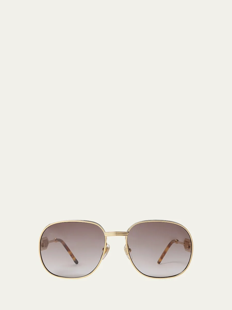 CASABLANCA round sunglasses in 18karat gold plated stainless steel and acetate Gradient lenses Adjustable nose pads Logo on temples Thin, tapered arms Capped earpieces Spot clean 100% UVA/UVB protection Made in Japan
