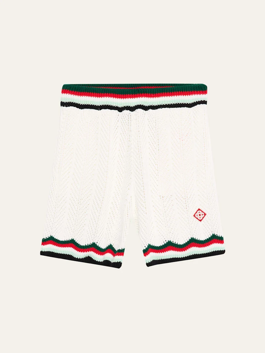CASABLANCA shorts in chevron-patterned cotton crochet highlighted with scalloped stripe trim Regular rise Flat front Side slip pockets Relaxed legs Ribbed waistband Pull-on style Cotton Lining: Polyester Hand wash Imported Online Inquiries: BGS21_NDHP7| Store Inquiries: #5040400
