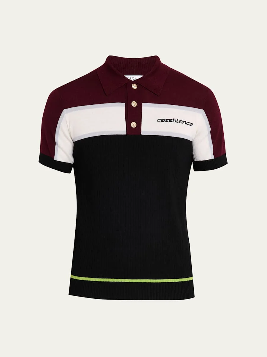 Men's Stripe Knit Logo Polo Shirt