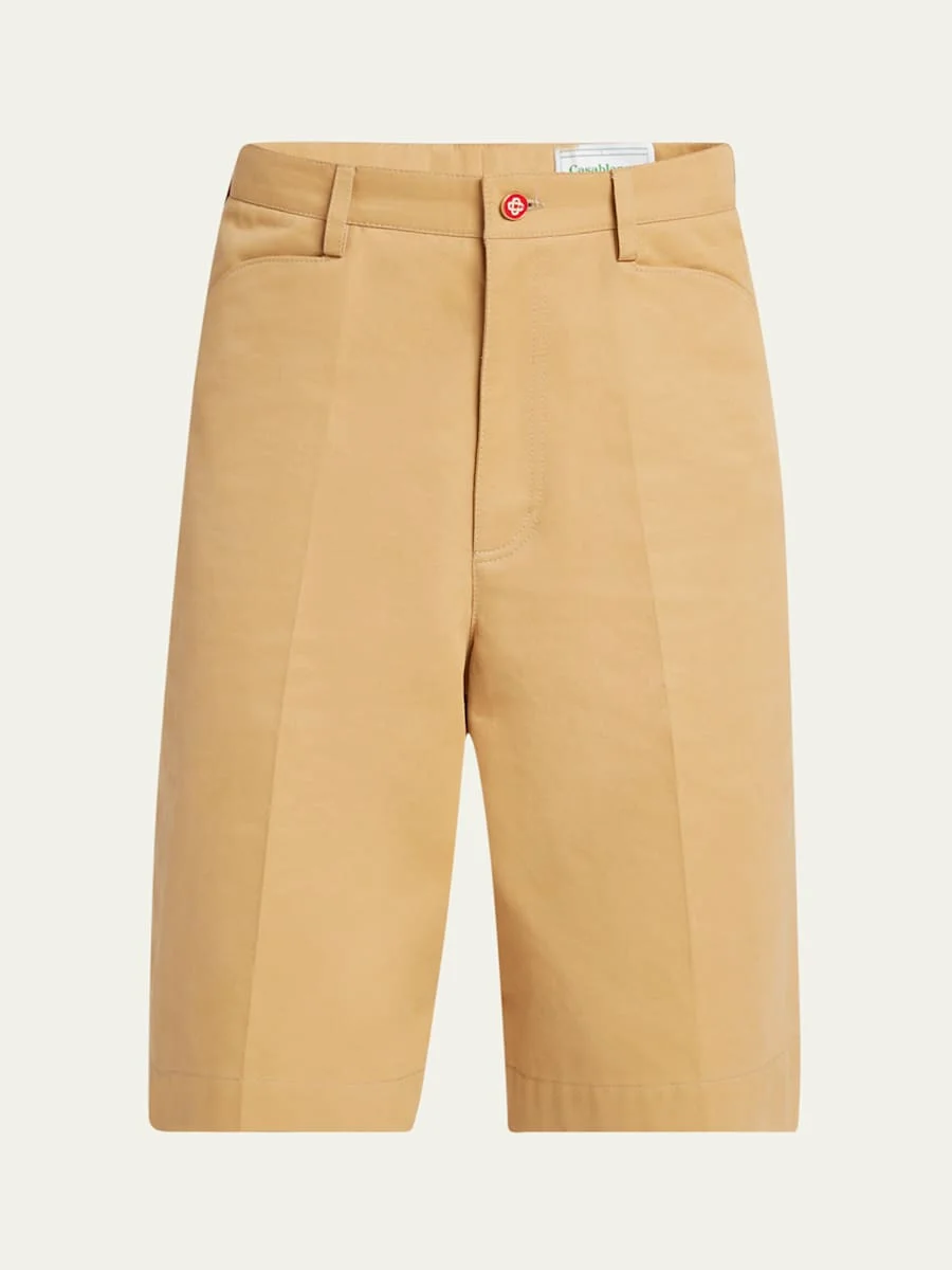 CASABLANCA twill chicano shorts Contrast monogram buttons Front cutaway pockets Buttoned back pockets Loose fit through straight legs Button/zip closure; belt loops Cotton Made in Portugal Online Inquiries: BGS21_ND1BL| Store Inquiries: #4994261