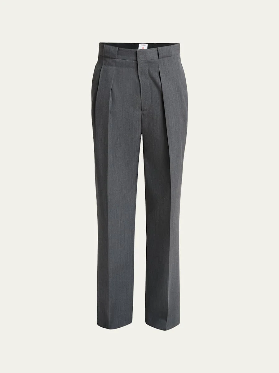 CASABLANCA trousers defined by oversized front pleats for a stylish allure High rise Side onseam pockets Buttoned back besom pockets Relaxed fit through straight legs Full length Hidden buttonzip front; belt loops Wool Dry clean only Made in Portugal