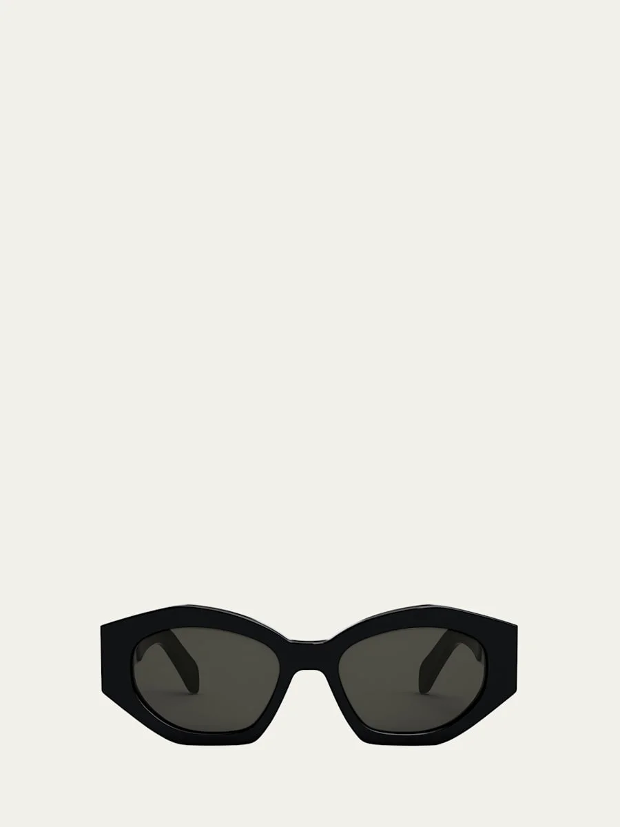 Celine oval sunglasses in acetate and nylon Lens/bridge/temple (in mm): 55-19-145 Solid-color lenses Saddle nose bridge Triomphe metal signature on the temples Tapered arms Curved temple tips Acetate/nylon 100% UVA/UVB protection Made in Italy Proposition 65 warning for California residents Online Inquiries: BGS21_NC986| Store Inquiries: #4835482