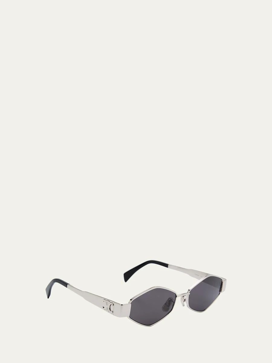 Celine "Cl40254um" geometric sunglasses in metal and nylon Lens/bridge/temple (in mm): 54-16-135 Solid-color lenses Adjustable nose pads Triomphe metal signature on the temples Tapered arms Curved, capped temple tips Metal/nylon 100% UVA/UVB protection Made in Italy Proposition 65 warning for California residents This product contains perfluoroalkyl and polyfluoroalkyl substances (PFAS). For more information, please visit the manufacturer’s website. Online Inquiries: BGS21_NBVEQ| Store Inquiries: #4727454