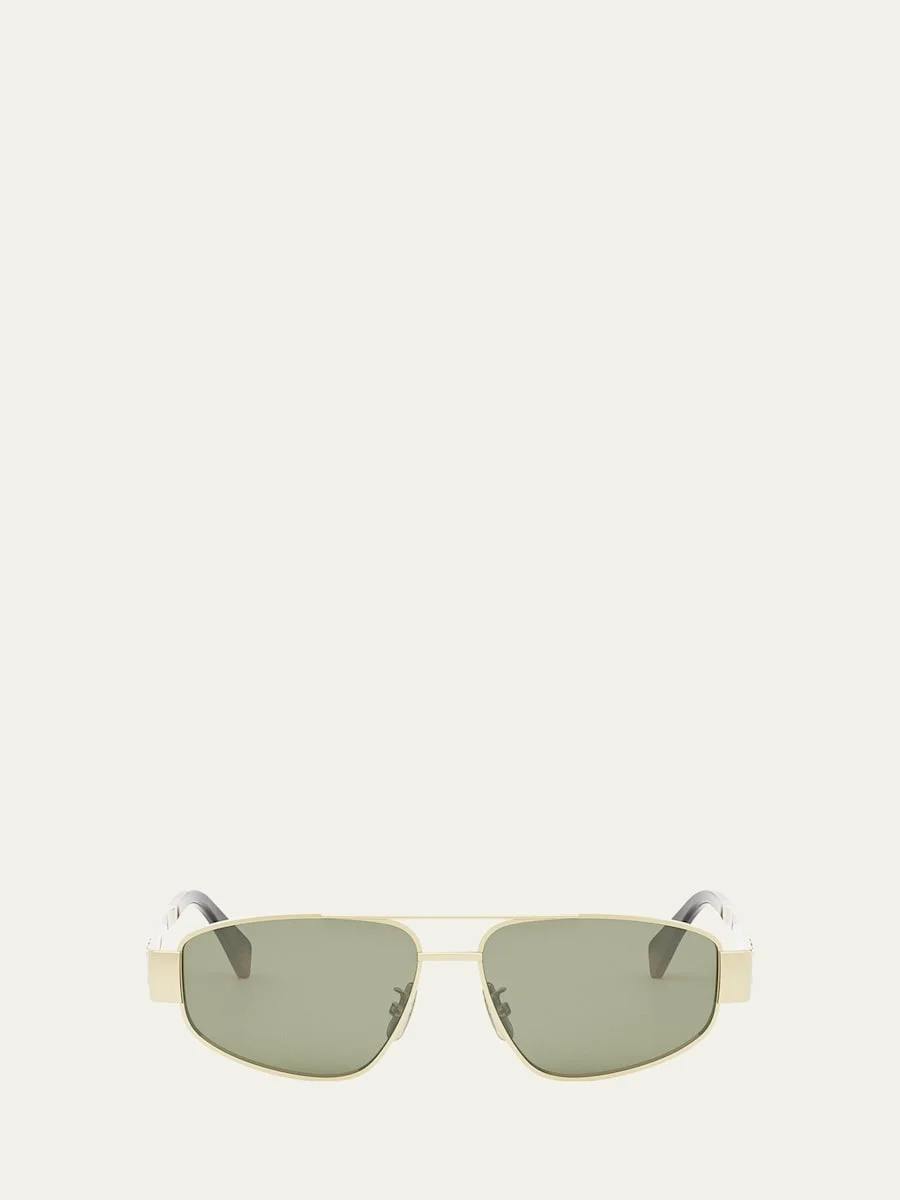 Celine aviator sunglasses in golden metal Eye/bridge/temple (in mm): 57-14-140 Solid lenses Adjustable nose pads Signature Triomphe logo on temples Thin, tapered Tortious shell earpieces Metal/nylon/polyamide Hand wash 100% UVA/UVB protection Made in Italy Proposition 65 warning for California residents Online Inquiries: BGS21_NBUQD| Store Inquiries: #4721598