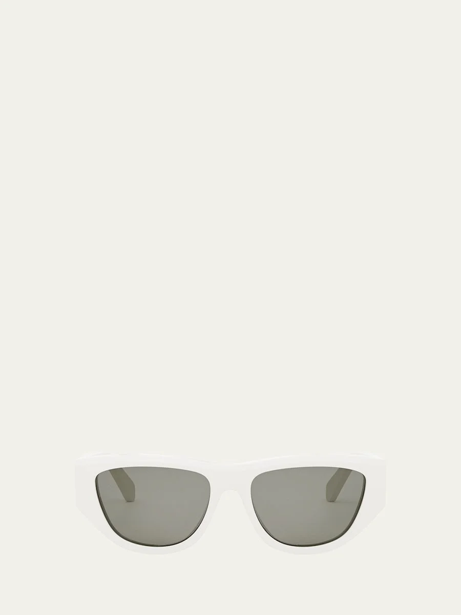 Celine "Monochroms" cateye sunglasses in acetate and nylon/polyamide Lens/bridge/temple (in mm): 5515135 Saddle nose bridge Logo on temples Wide, tapered arms 100% UVA/UVB protection Made in Italy