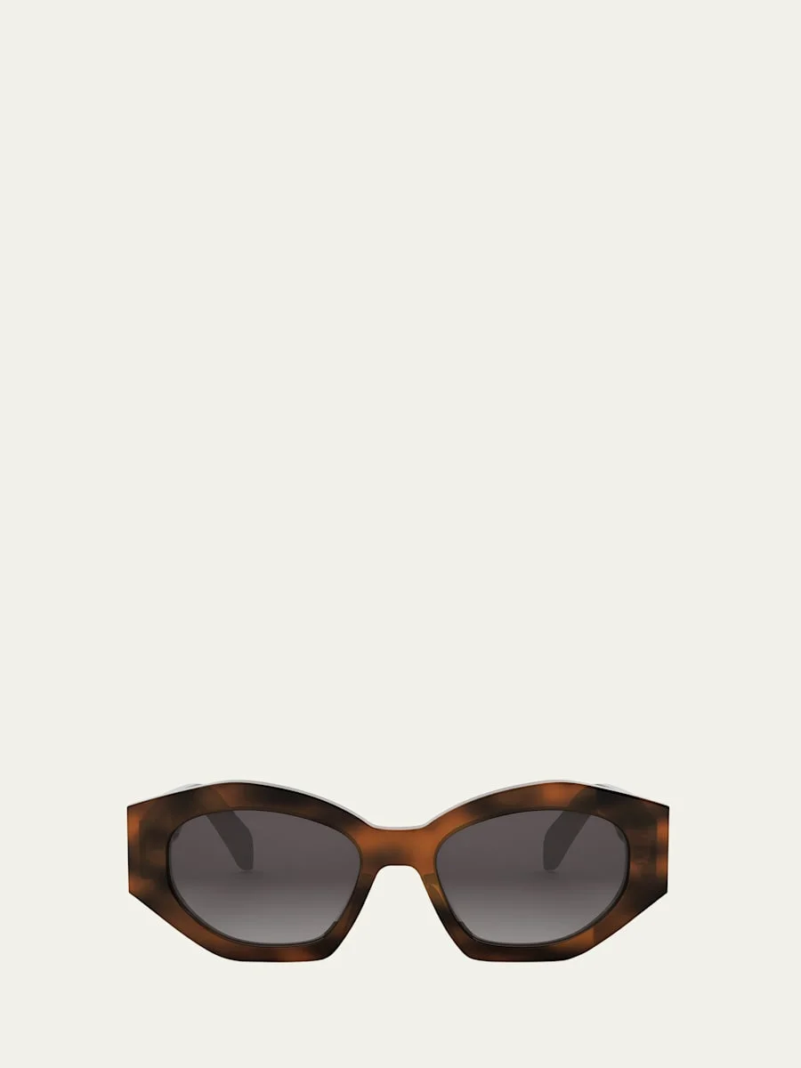 Celine sunglasses set on acetate oval frames Eye/bridge/temple (in mm): 55-19-145 Gradient lenses Saddle nose bridge Triomphe metal signature in relief on both temples Wide, tapered arms 100% UVA/UVB protection Acetate Hand wash Made in Italy Proposition 65 warning for California residents Online Inquiries: BGS21_D5AKZ| Store Inquiries: #5044226