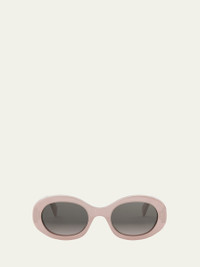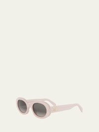Celine "Triomphe" oval sunglasses in acetate and nylon/polyamide Lens/bridge/temple (in mm): 5517140 Solid lenses Saddle nose bridge Triomphe signature on temples Thin, tapered arms Hand wash 100% UVA/UVB protection Made in Italy