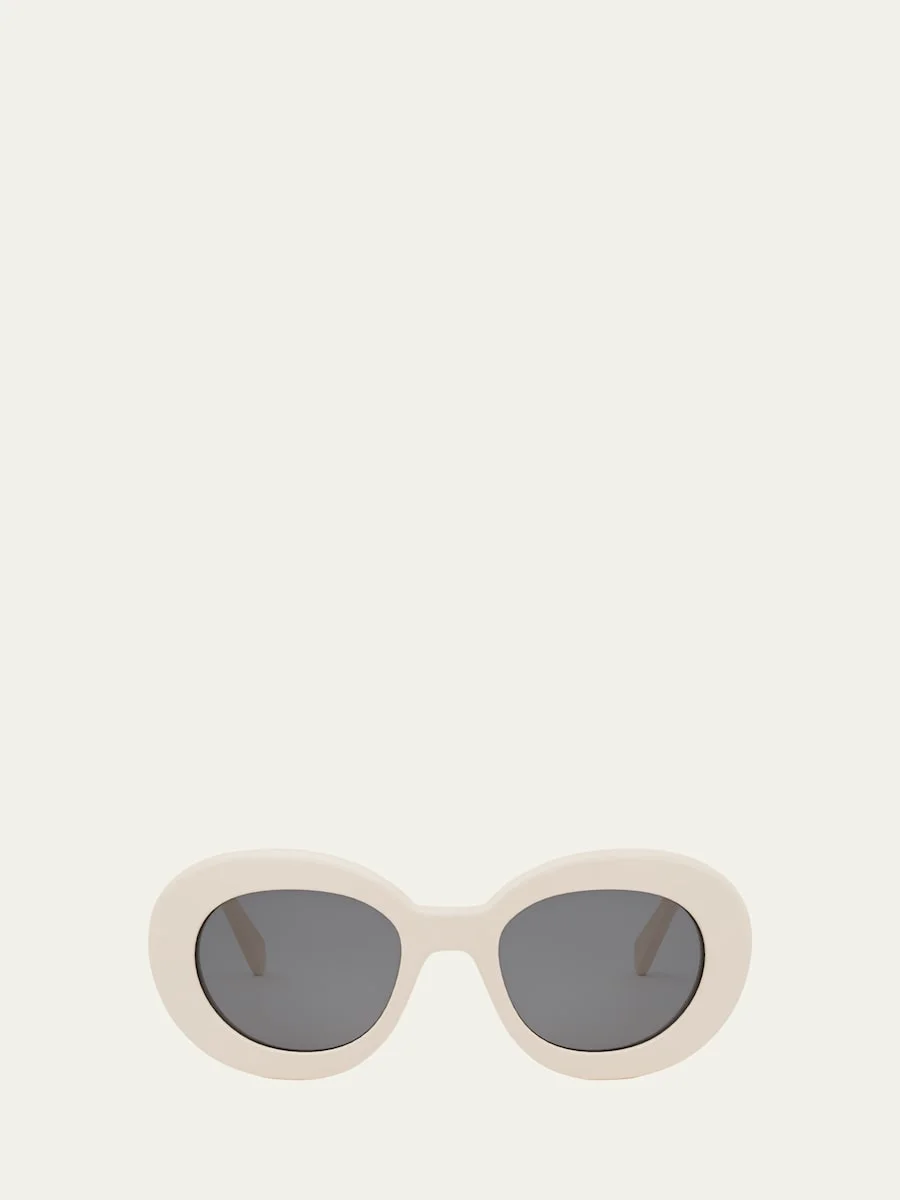 Celine "Triomphe" round sunglasses in acetate Eye/bridge/temple (in mm): 144-50-23 Gradient lenses Saddle nose bridge Thin tapered arms Triomphe emblem on temples Acetate 100% UVA/UVB protection Made in Italy Proposition 65 warning for California residents Online Inquiries: BGS21_D5535| Store Inquiries: #4972697