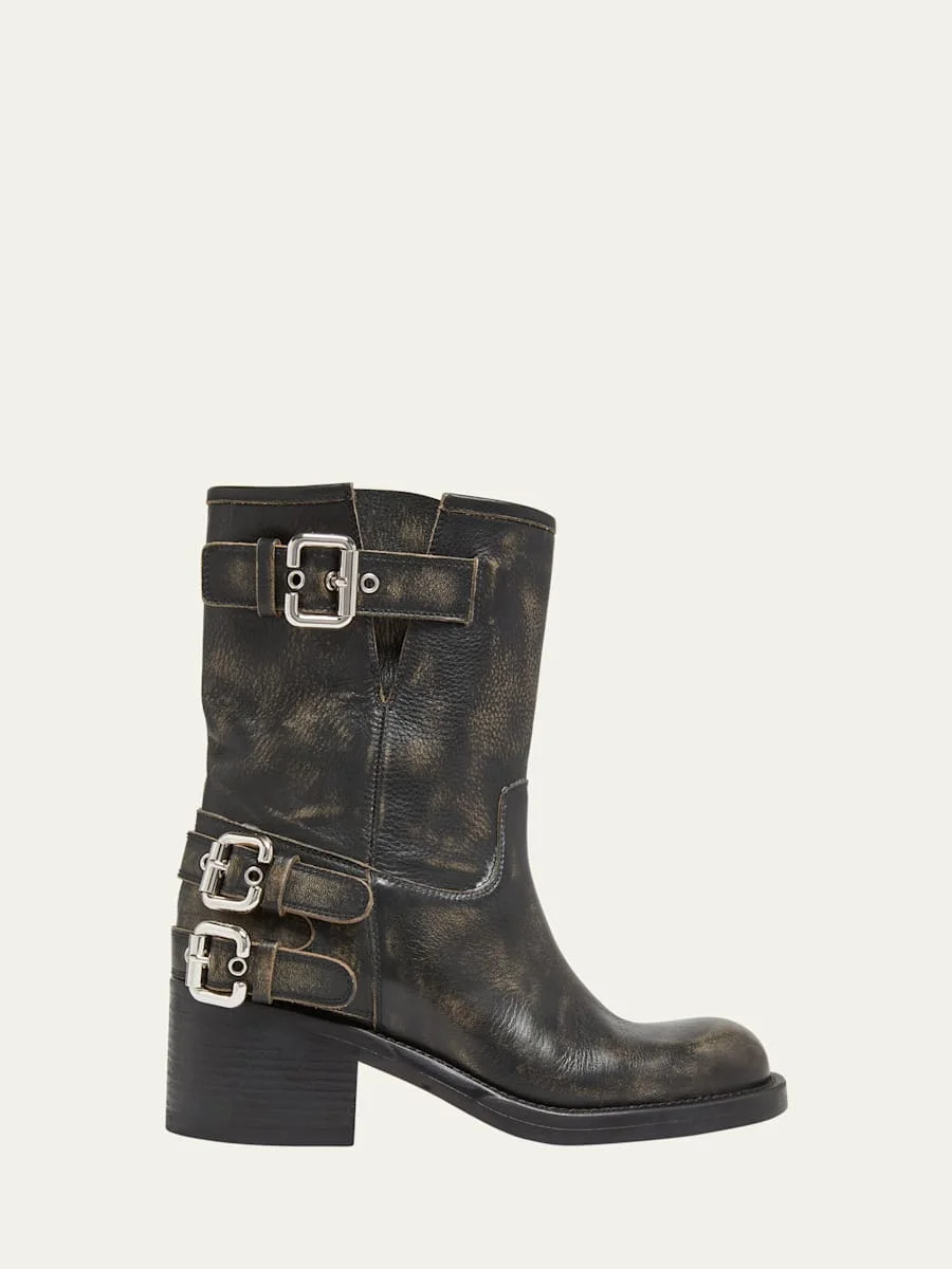 Inspired by the classic biker silhouette, the "Dakota" ankle boots by Chloe are crafted from grained, brushed calf leather with silver-tone Paddington buckles 2.36 in / 60 mm block heel Round toe Adjustable side buckle straps Pull-on style Leather lining Rubber outsole Made in Italy Online Inquiries: BGS21_X7CX6| Store Inquiries: #5424013