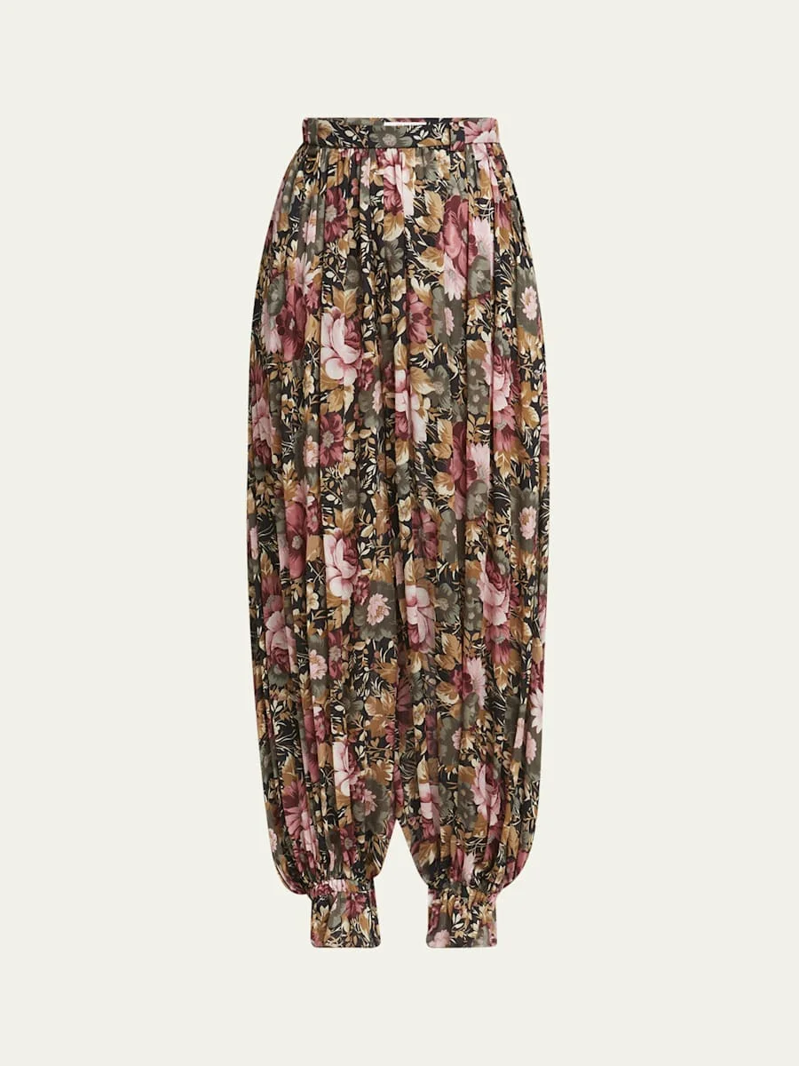 Floral Pleated Silk Pants