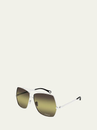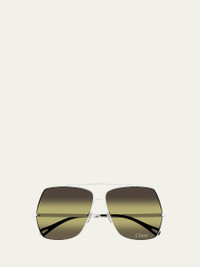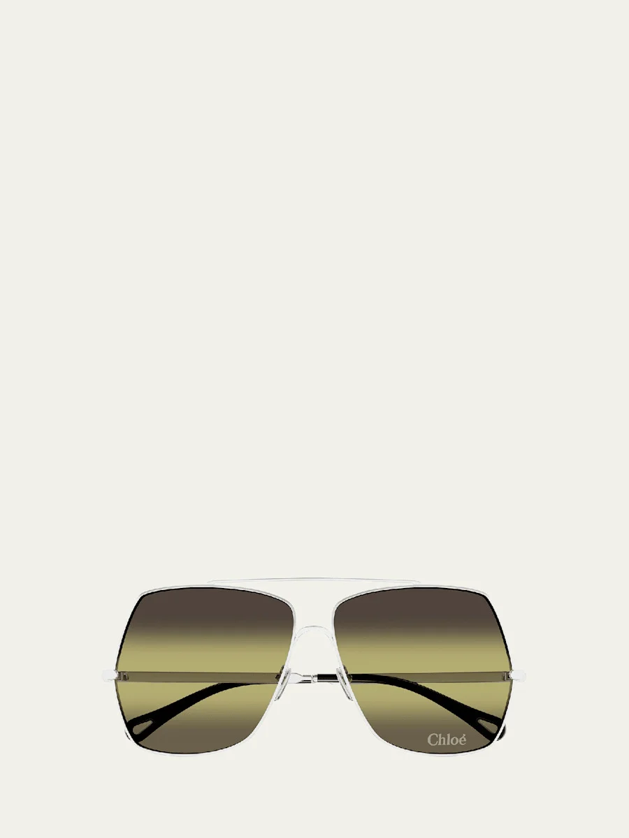 Chloe aviator sunglasses in metal Lens/bridge/temple (in mm): 62-12-140 Gradient lenses Left lens logo script Metal top bar Adjustable nose pads Signature logo on temples Thin, tapered arms Capped earpieces 100% UVA/UVB protection Made in Italy Proposition 65 warning for California residents Online Inquiries: BGS21_D509J| Store Inquiries: #4869802