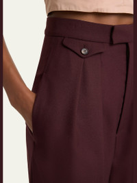 Chloe pants are tailored in a wool gabardine featuring a double pleated front with water buffalo buttoned flap pockets High rise Angled side slip pockets Back button-flap pockets Wide legs Full length Hook-tab/zip fly Wool Dry clean Imported Online Inquiries: BGS21_BB412| Store Inquiries: #5485815