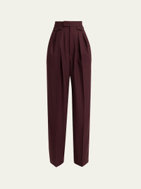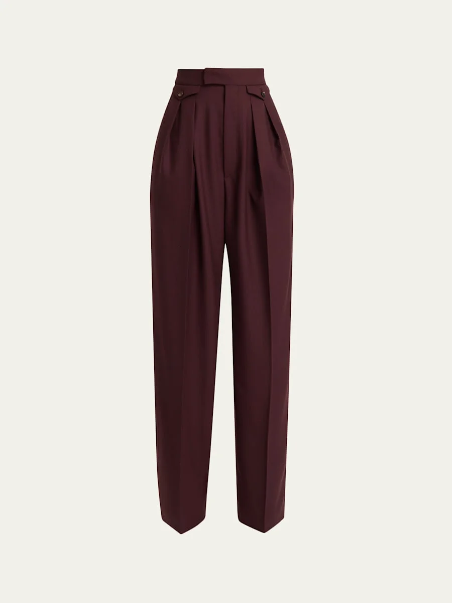 High-Rise Pleated Wool Gabardine Wide-Leg Pants