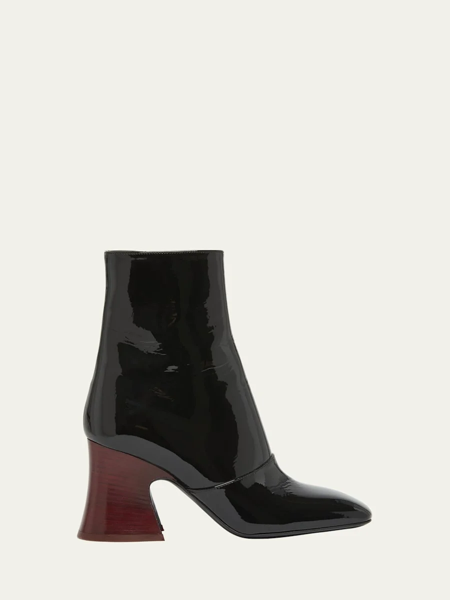 Chloe "Janis" booties in patent calf leather 3.15 in / 80 mm stacked block heel Square toe Side zip for easy on/off Leather outsole Lining: Leather Professional cleaning recommended Made in Italy Online Inquiries: BGS21_X6W8Y| Store Inquiries: #5016968