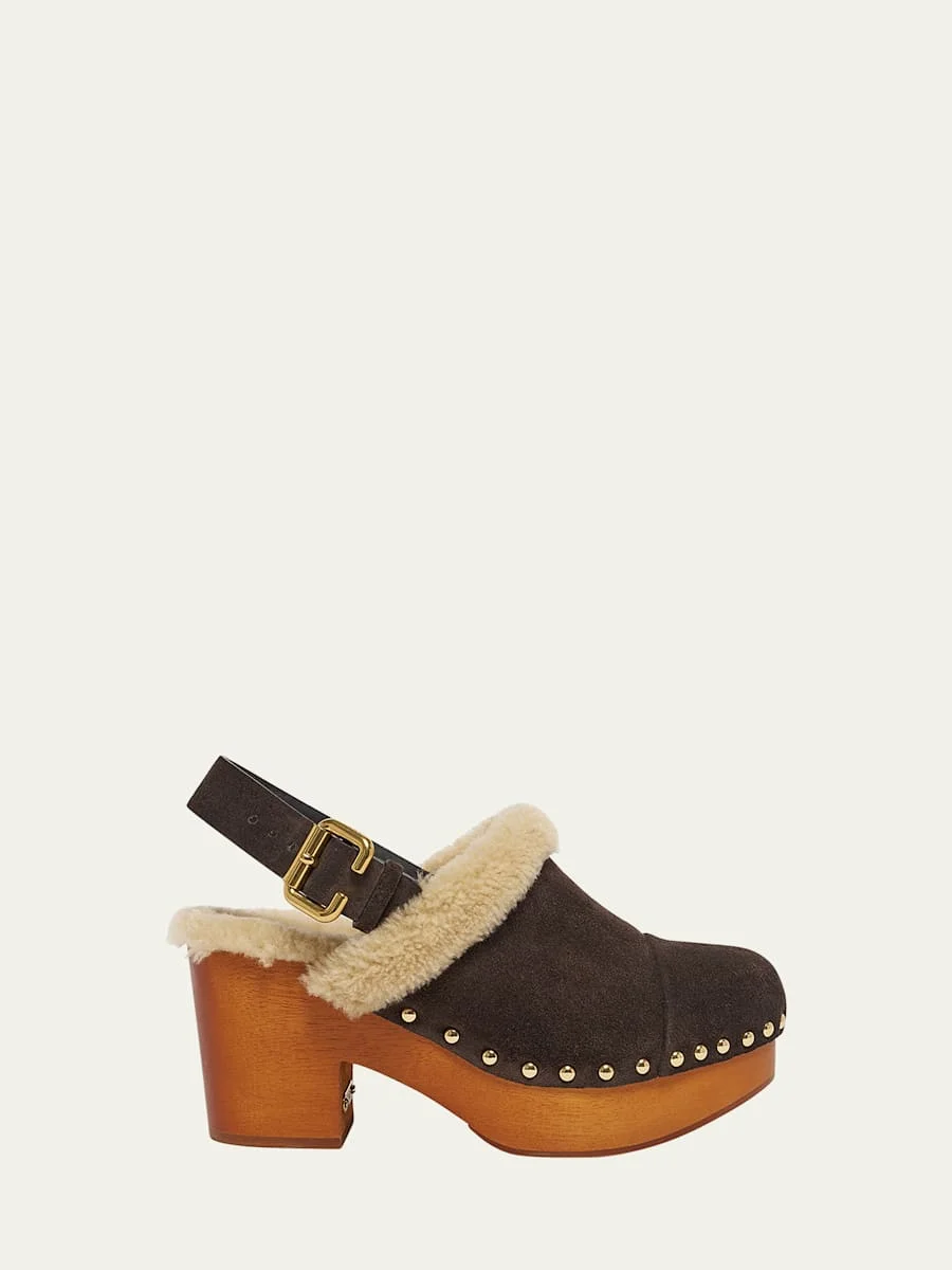 Jeanette Suede Shearling-Lined Clogs
