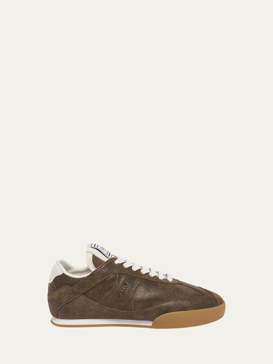 Constructed from crackled calf leather, the "Kick" retro low-top sneakers by Chloe feature a contrasting heel tab and trim Flat heel Reinforced round toe Lace-up vamp Logo patch at the tongue Rubber outsole Lining: Polyester Imported Online Inquiries: BGS21_X7CX7| Store Inquiries: #5424073