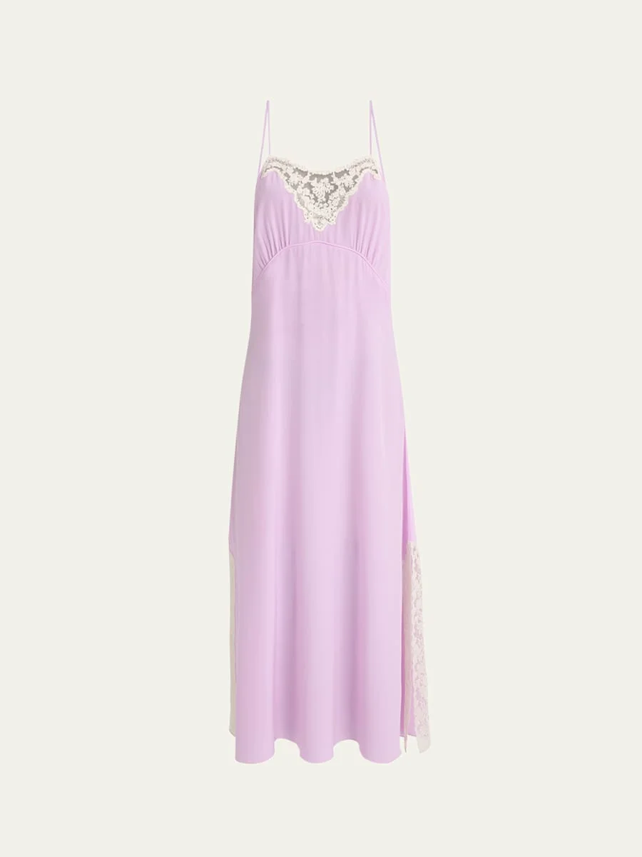 THIN-STRAP MIDI DRESS IN CRÊPE DE CHINE & LACE