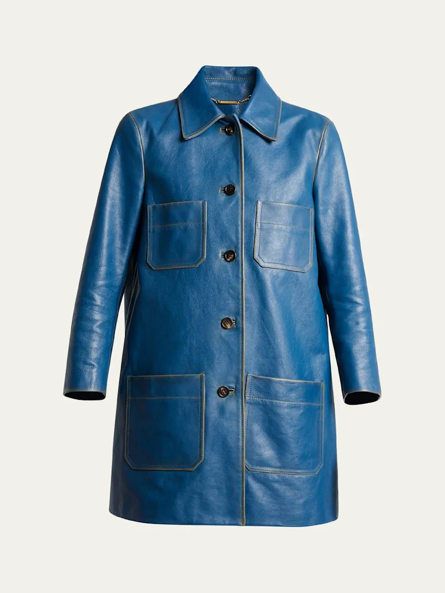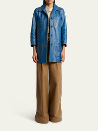 Chloe car coat in calf leather Spread collar; single-breasted front Bracelet sleeves Front patch pockets Straight fit Hem falls below the hip Leather Lining: Viscose/cotton Dry clean Made in Italy Online Inquiries: BGS21_BA3CW| Store Inquiries: #5024489