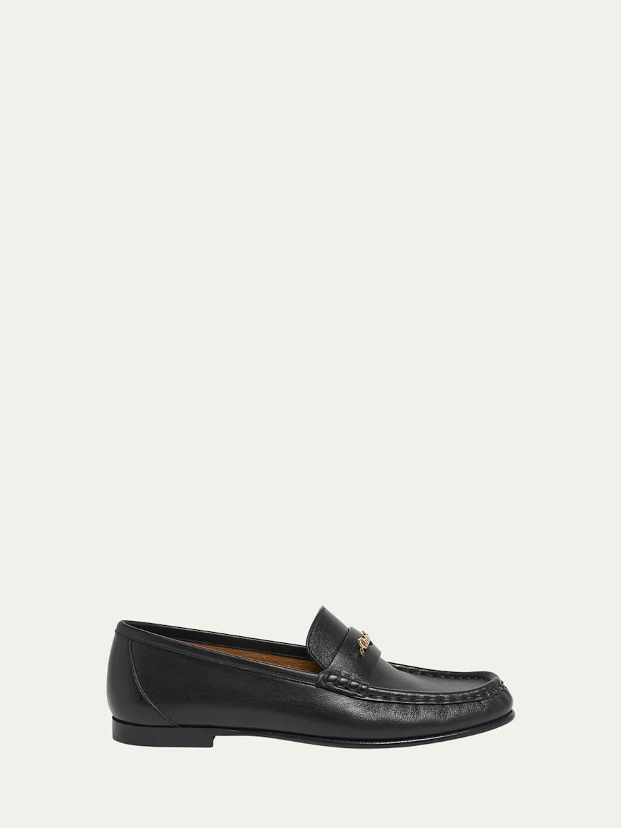 Leather Logo Chain Penny Loafers