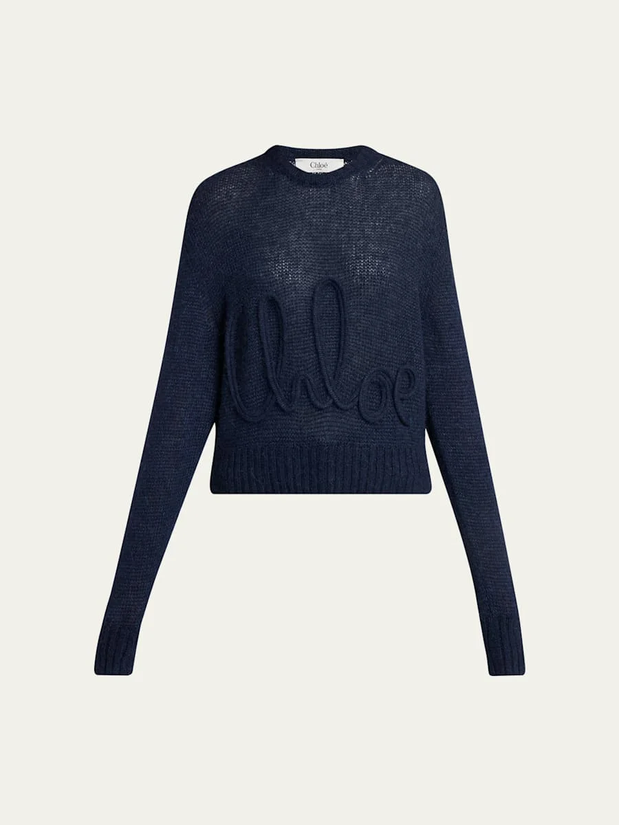 Chloe sweater in an alpaca wool and silk knit detailed with ribbed trims and large Chloe embroidery on the front Crew neckline Long sleeves Relaxed fit Pullover style Wool/silk/nylon/polyamide Made in Italy This item cannot be sold or shipped to California. Online Inquiries: BGS21_B9VTK| Store Inquiries: #4984411