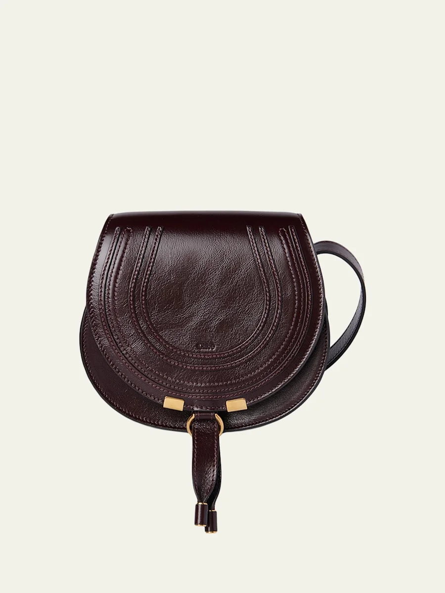 Chloe "Marcie" crossbody bag in shiny calfskin leather Crossbody strap Flap top with magnetic closure Lining: Leather Approx. 6.7"H x 7.1"W x 3.9"D Made in Italy Online Inquiries: BGS21_V6TAH| Store Inquiries: #4839441