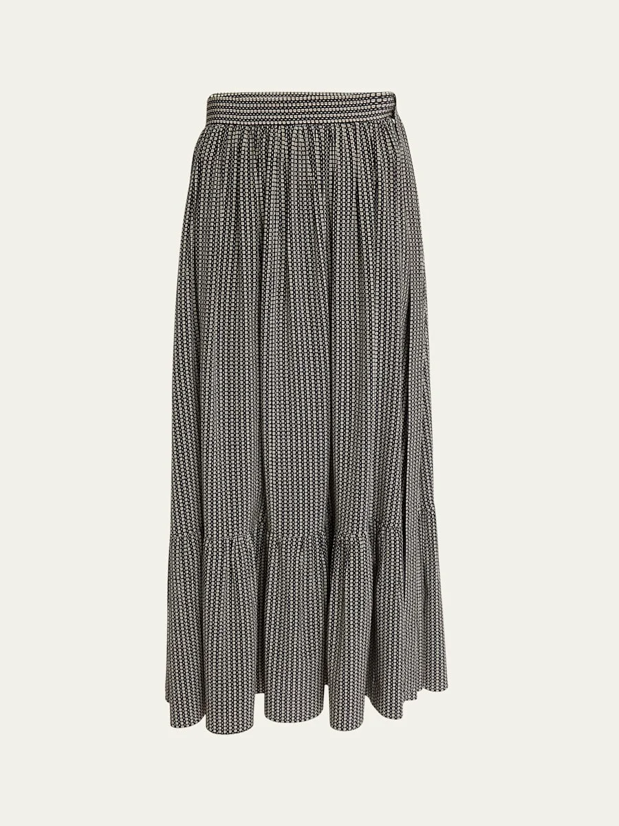 Micro Check Silk Maxi Skirt
