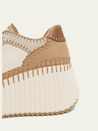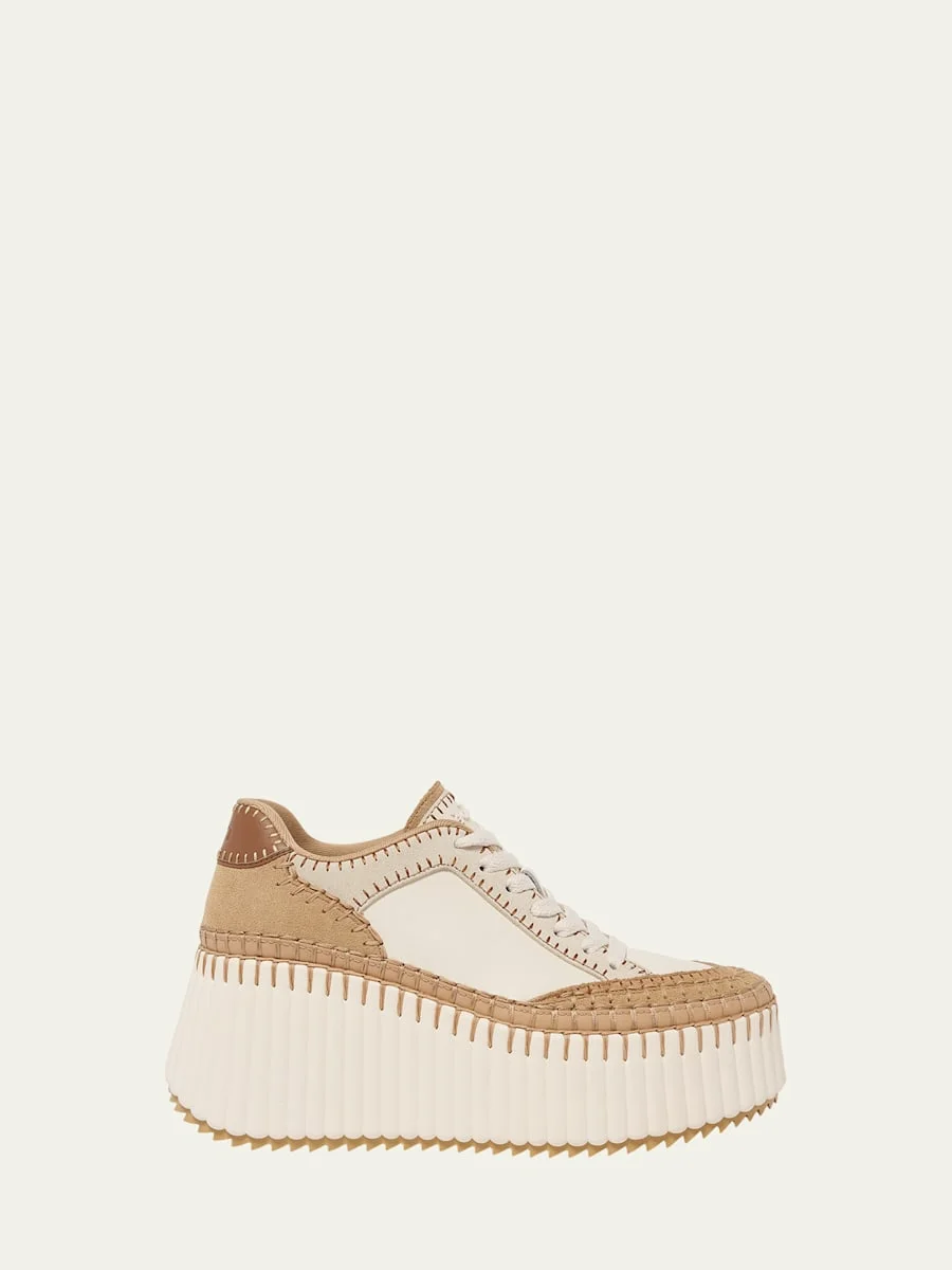 Chloe "Nama" platform sneakers in leather and suede with whipstitch detailing 3.15 in / 80 mm flatform heel Round toe Laceup vamp Lightweight, flexible EVA outsole Imported