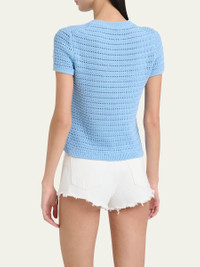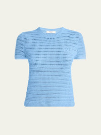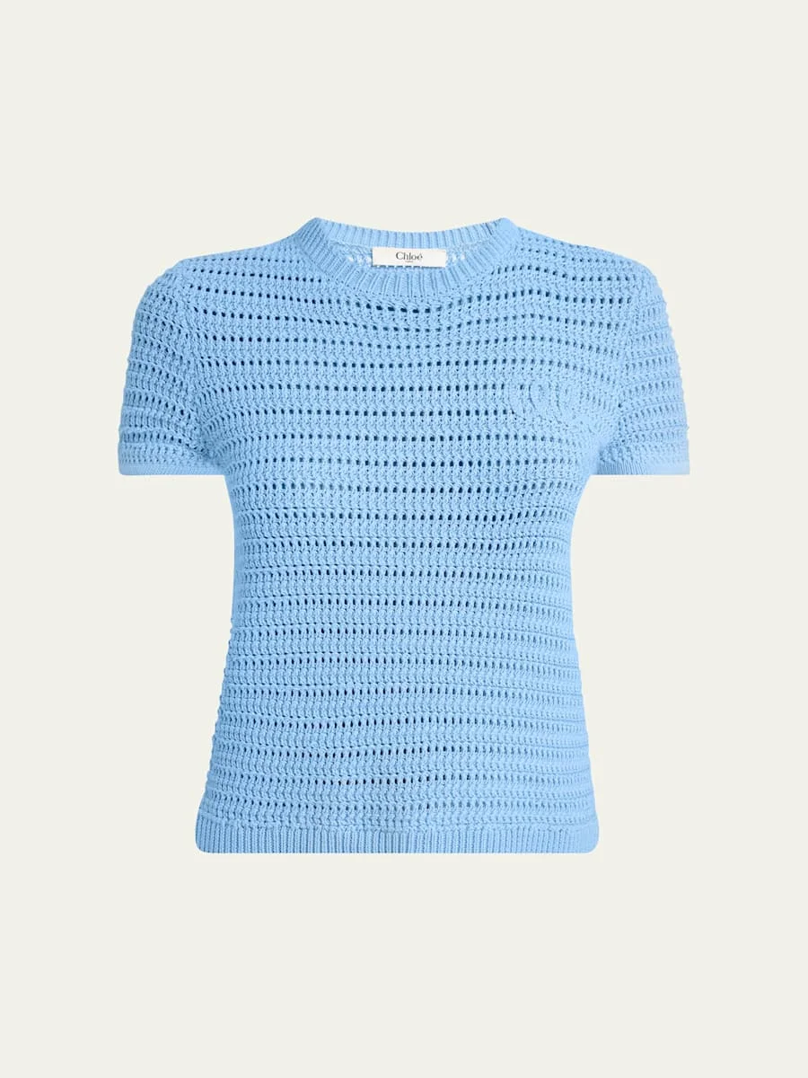Chloe open-knit top detailed with tonal logo embroidery Crew neckline Short sleeves Relaxed fit Pullover style Cotton Dry clean Imported Online Inquiries: BGS21_BA3CH| Store Inquiries: #5024474